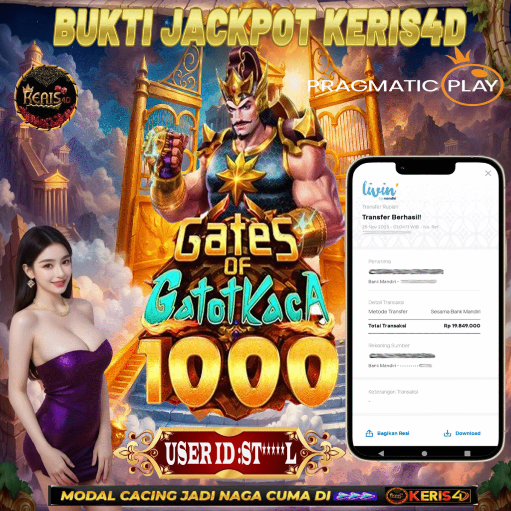 KERIS4D dikenal sebagai situs terpercaya yang selalu menghadirkan pengalaman bermain slot online yang aman, fair, dan berlisensi resmi. Di sini, kami tidak hanya sekadar memberikan janji, tapi bukti nyata berupa slip kemenangan yang dapat Anda lihat secara langsung.