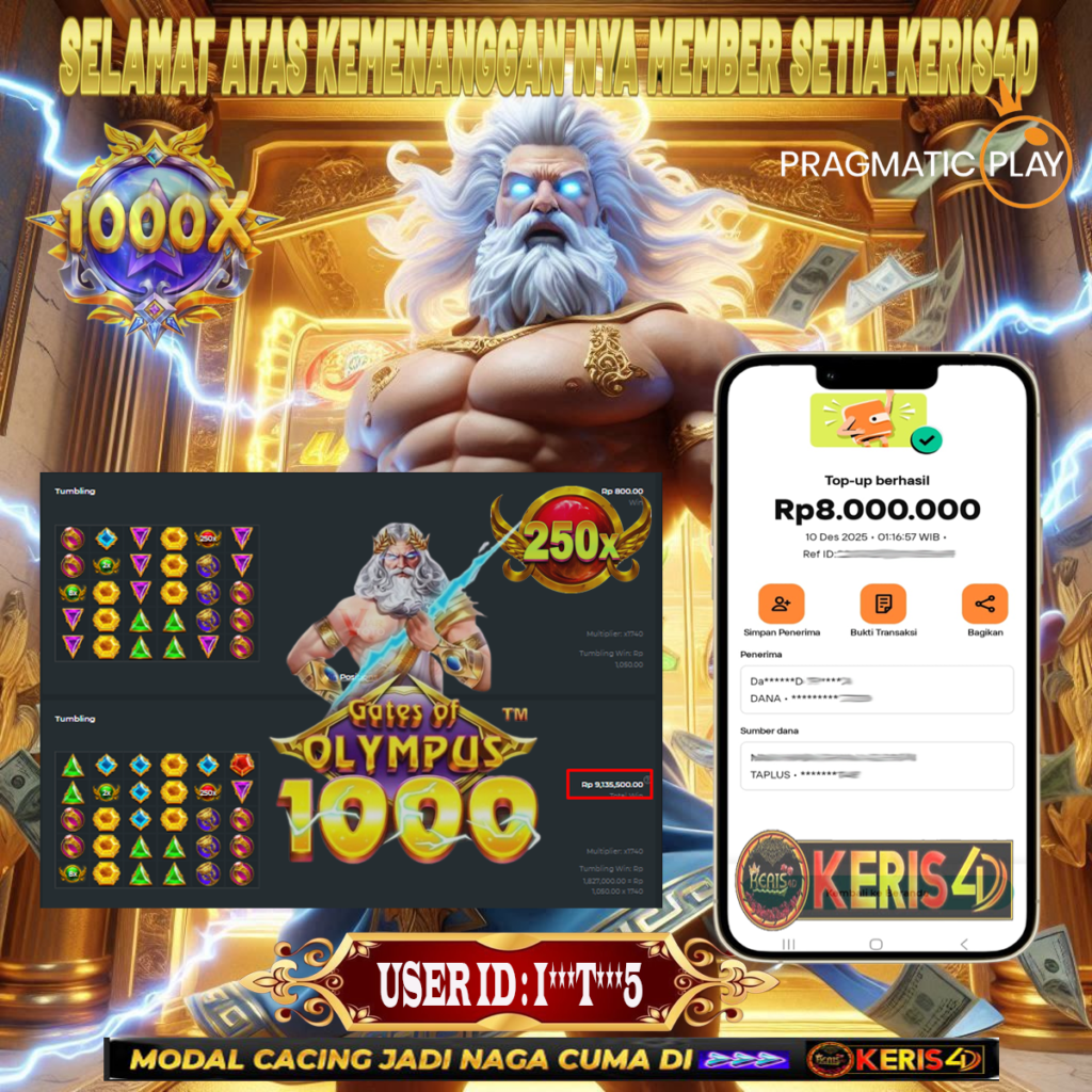 KERIS4D dikenal sebagai situs terpercaya yang selalu menghadirkan pengalaman bermain slot online yang aman, fair, dan berlisensi resmi. Di sini, kami tidak hanya sekadar memberikan janji, tapi bukti nyata berupa slip kemenangan yang dapat Anda lihat secara langsung.