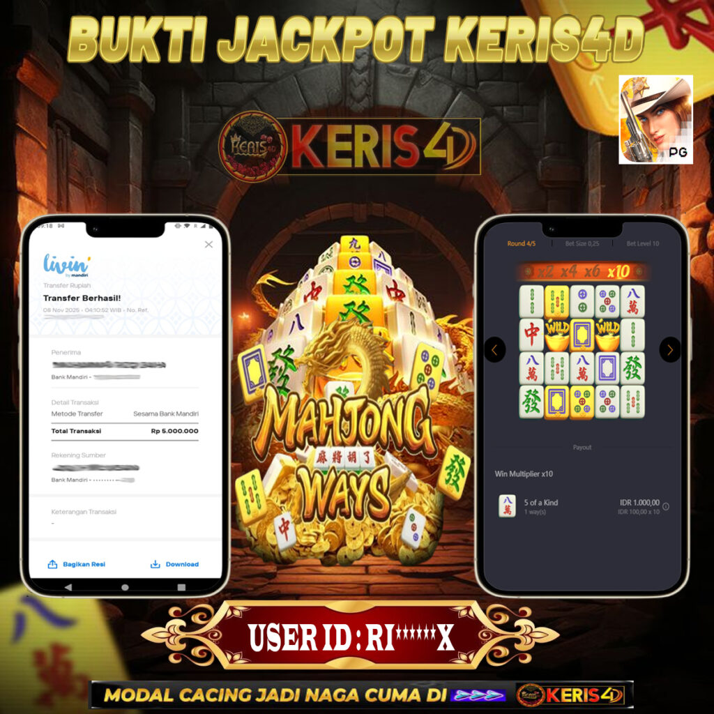 Setiap hari, member KERIS4D berhasil meraih jackpot besar dari berbagai provider slot ternama yang kami sediakan, seperti Pragmatic Play, Habanero, PG Soft, dan masih banyak lagi. Kami secara rutin menampilkan bukti screenshot atau rekapan kemenangan yang berhasil diraih, mulai dari kemenangan ratusan ribu hingga puluhan juta rupiah. Semua slip kemenangan ini kami hadirkan untuk membuktikan bahwa di KERIS4D, peluang menang itu nyata.