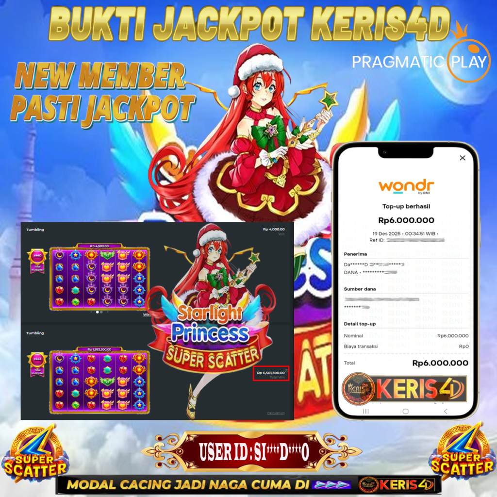 Setiap hari, member KERIS4D berhasil meraih jackpot besar dari berbagai provider slot ternama yang kami sediakan, seperti Pragmatic Play, Habanero, PG Soft, dan masih banyak lagi. Kami secara rutin menampilkan bukti screenshot atau rekapan kemenangan yang berhasil diraih, mulai dari kemenangan ratusan ribu hingga puluhan juta rupiah. Semua slip kemenangan ini kami hadirkan untuk membuktikan bahwa di KERIS4D, peluang menang itu nyata.