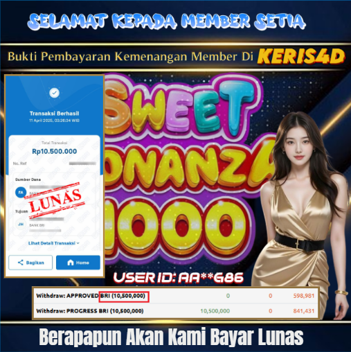 KERIS4D dikenal sebagai situs terpercaya yang selalu menghadirkan pengalaman bermain slot online yang aman, fair, dan berlisensi resmi. Di sini, kami tidak hanya sekadar memberikan janji, tapi bukti nyata berupa slip kemenangan yang dapat Anda lihat secara langsung.