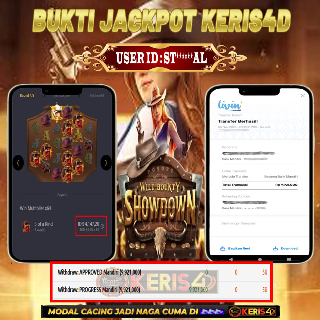 Setiap hari, member KERIS4D berhasil meraih jackpot besar dari berbagai provider slot ternama yang kami sediakan, seperti Pragmatic Play, Habanero, PG Soft, dan masih banyak lagi. Kami secara rutin menampilkan bukti screenshot atau rekapan kemenangan yang berhasil diraih, mulai dari kemenangan ratusan ribu hingga puluhan juta rupiah. Semua slip kemenangan ini kami hadirkan untuk membuktikan bahwa di KERIS4D, peluang menang itu nyata.