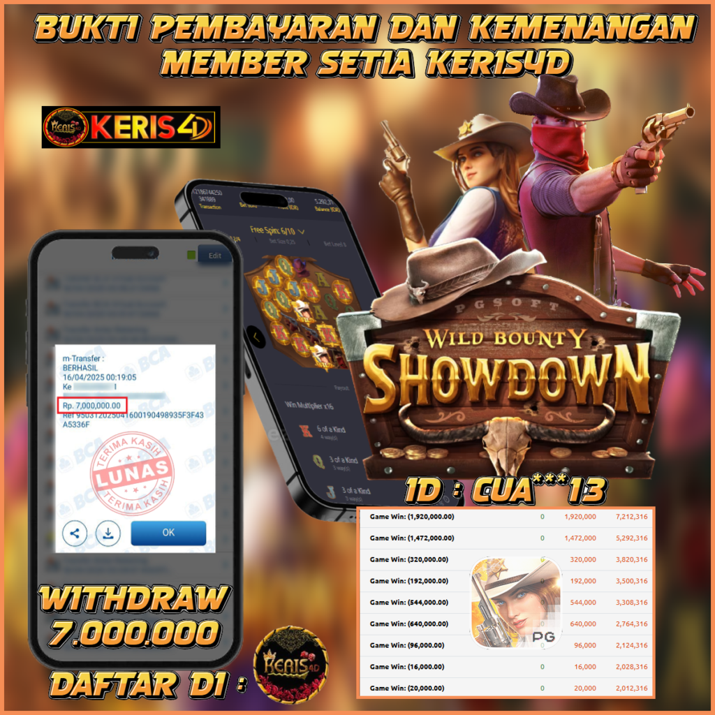 KERIS4D dikenal sebagai situs terpercaya yang selalu menghadirkan pengalaman bermain slot online yang aman, fair, dan berlisensi resmi. Di sini, kami tidak hanya sekadar memberikan janji, tapi bukti nyata berupa slip kemenangan yang dapat Anda lihat secara langsung.