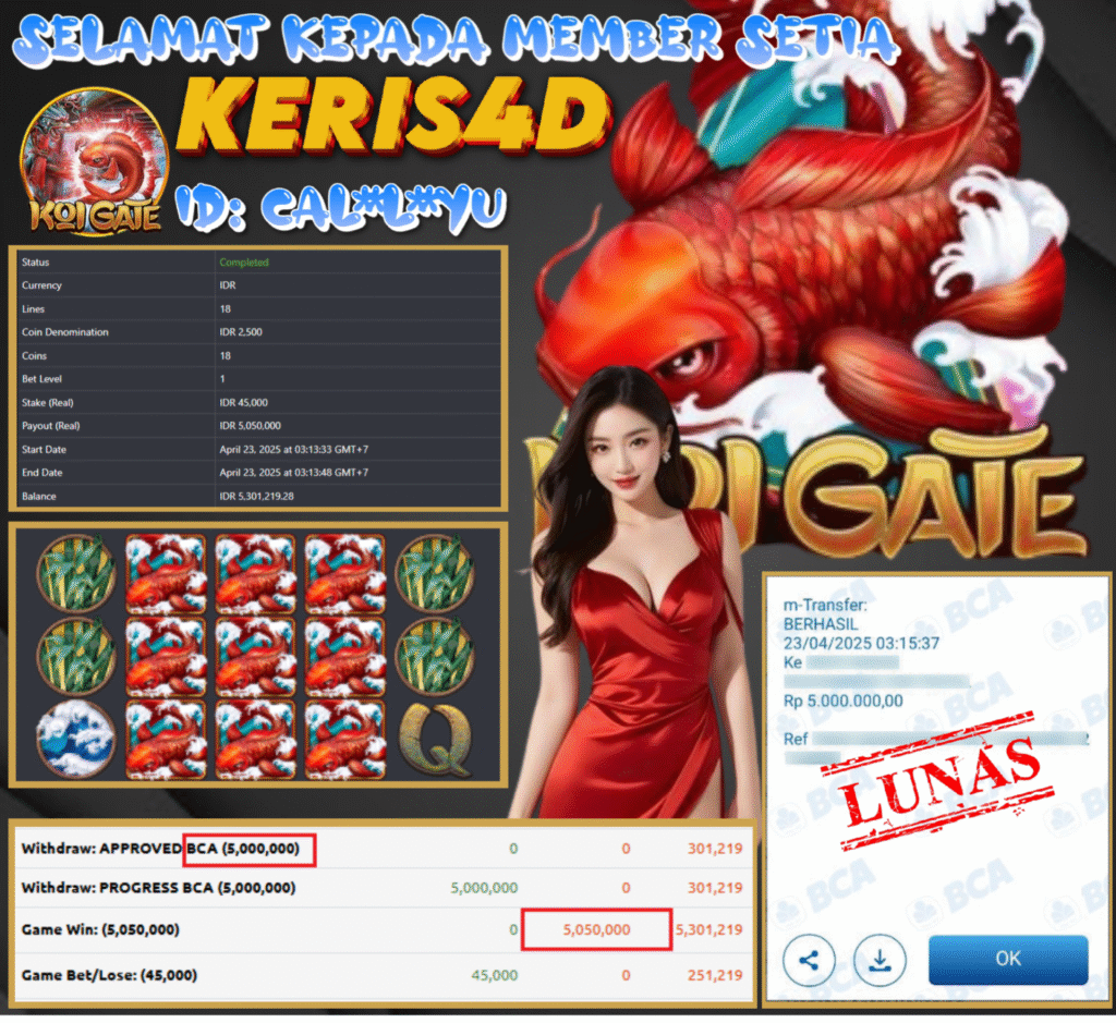 JACKPOT SLOT GACOR MAIN THE KOI GATE 23 APRIL 2025, Kemenangan Slot, Bukti Kemenangan Slot, Kemenangan Slot HABANERO Menang Slot online, Slot Gacor, Situs Aman Terpercaya, WD Berapapun Pasti DI Bayar Tuntas, Maxwin Slot Online.